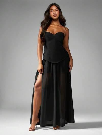 MISSGUIDED Formal Ball Gown Maxi Dress With Sweetheart Neckline Side Slit Corset Bustier