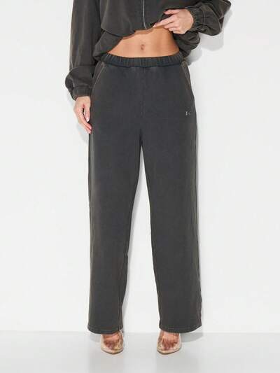 KIZN Women's Gray Washed Straight Leg Sweatpants With Elastic Waistband And Side Pockets For Casual Loungewear-35%