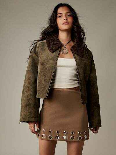MISSGUIDED Brown Suede Mini Skirt With Metal Eyelet Hem