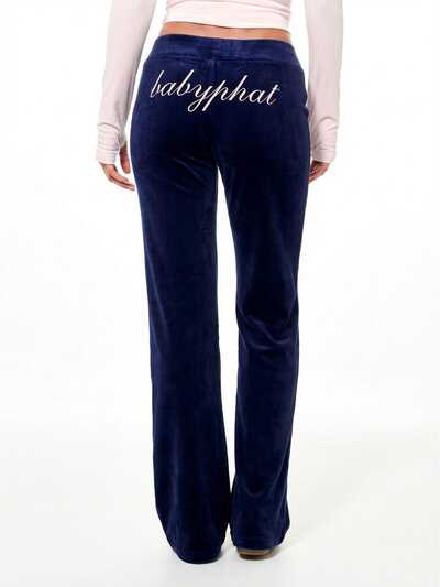 BABYPHAT Low Rise Velour Sweatpants With Rhinestone Embellishments For Women Comfortable Lounge Pants With Drawstring Waist And Flare Leg
