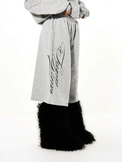 SUMWON WOMEN Oversized Wide Leg Graphic Print Jorts With Script Design And Elastic Waist For Casual Summer ComfortCode: SAVE25