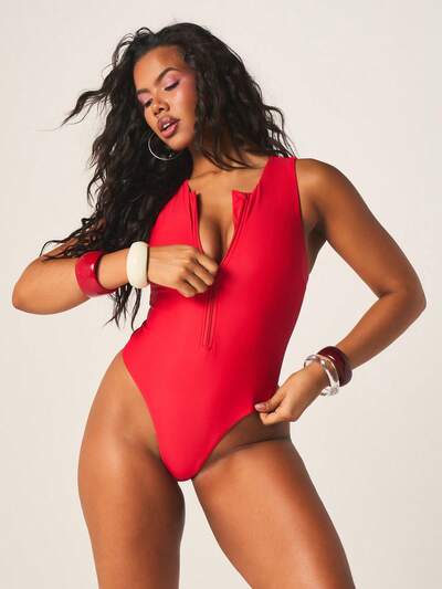 MISSGUIDED Plunge Zip Front One Piece SwimsuitNEW