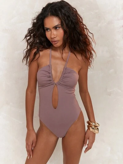MISSGUIDED Suede Textured Cut Out Plunge Neck Monokini With Metal Ring Detail-50%