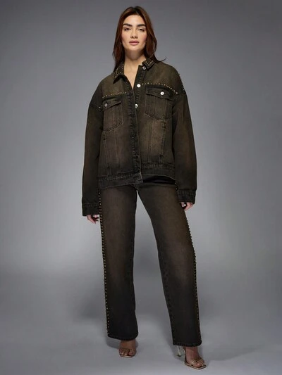 MISSGUIDED Oversized Studded Denim Trucker Jacket