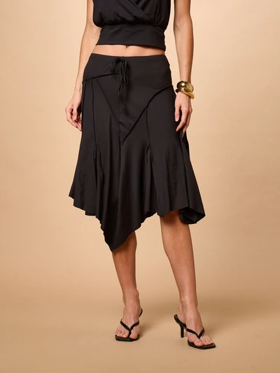 AiiRZ Asymmetric Hem Midi Skirt With Drawstring Tie Detail Black Handkerchief Style-10%
