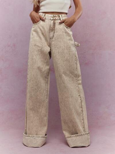 SUMWON WOMEN Camouflage Wide Leg Denim Jeans With Side Stripe Detail High Rise Relaxed Fit Casual Streetwear Fall Winter-10%