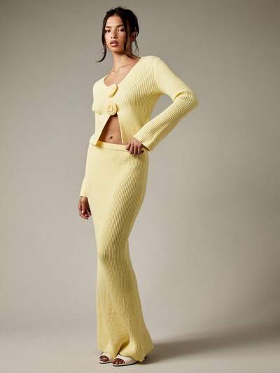MISSGUIDED Ribbed Knit V-Neck Top With Flared Maxi Skirt-50%