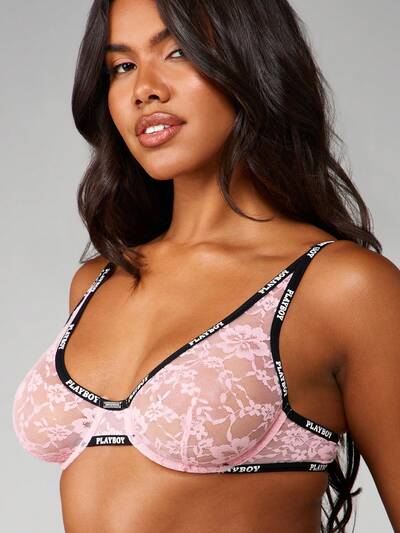 Missguided x Playboy Lace Balconette Wired Bra With Logo Straps-40%