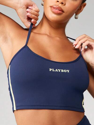 Missguided x Playboy Racerback Sports Bra With Contrasting Band And Logo Print-50%