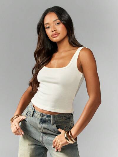 MISSGUIDED Ribbed Square Neck Cami Tank Top-50%