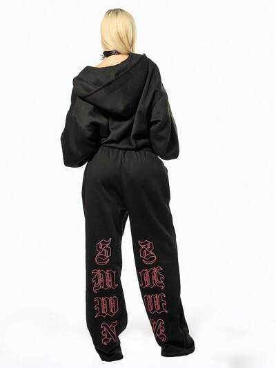 SUMWON WOMEN Halloween Gothic Letter Print Oversized Sweatpants With Contrast Stitch Detail For Winter-50%