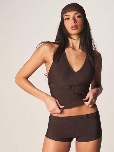 MISSGUIDED V Neck Tankini With Belt Detail-40%