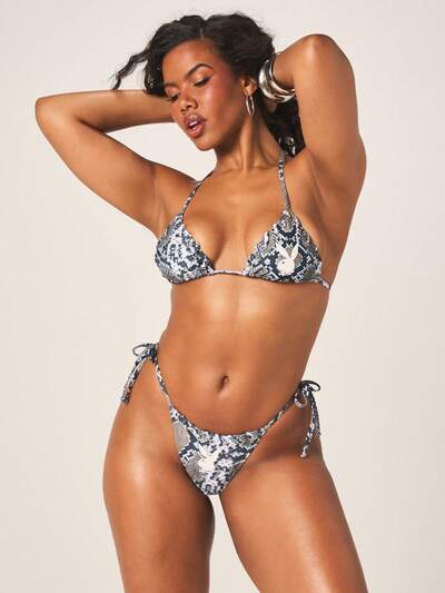 Missguided x Playboy Snake Print Triangle Bikini SetNEW