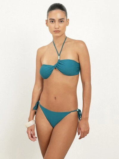 KSTM Women's Halter Twist Front One Piece Swimsuit With Cut Out Back Detail And Beaded Ties Turquoise Summer Beach Swimwear-40%