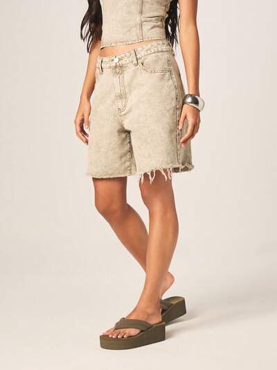 MISSGUIDED Distressed Denim Bermuda Shorts With Raw Hem-35%