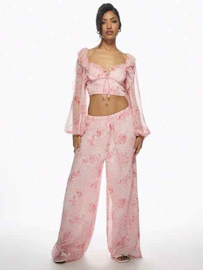 MISSGUIDED Floral Chiffon Two-Piece Ruffle Crop Top And Palazzo Pants-25%