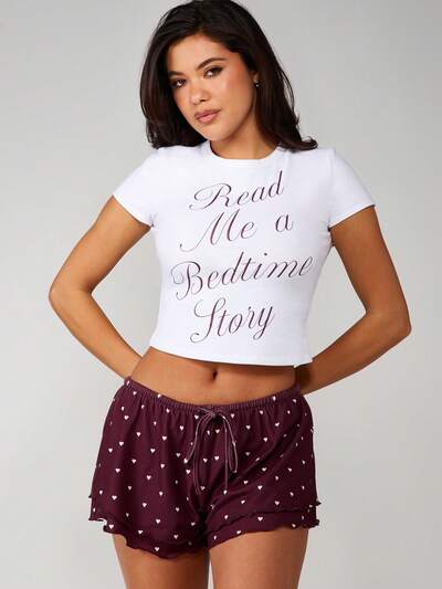 MISSGUIDED Graphic Crop Tee With Heart Print Shorts SetCode: SAVE25