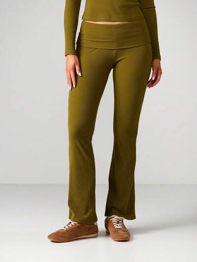 MISSGUIDED Ribbed Foldover Waistband Flare Pants