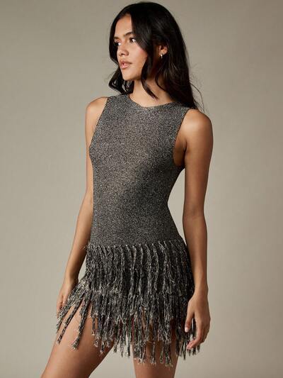 MISSGUIDED Pulloverkleid aus Metallic-Strick mit Fransensaum und QuastenCode: SAVE25