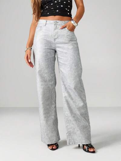 MISSGUIDED Jeans mit weitem Bein und Perlennieten