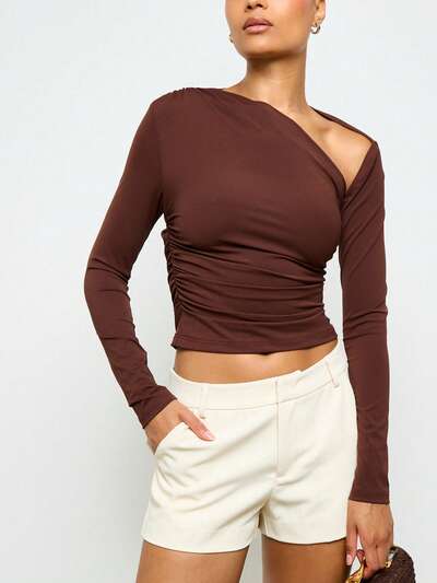 AiiRZ Elegante Bluse mit Off-Shoulder und Glockenärmeln, Crop Top für Partys, Abendveranstaltungen, formelle Anlässe, Date Nights, modisches Statement-Piece für Herbst, Winter und Feiertage