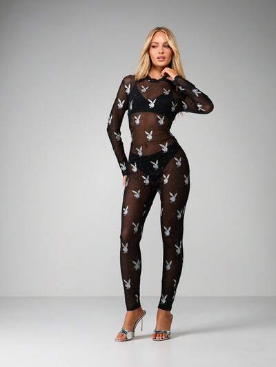 Missguided x Playboy Jumpsuit mit transparentem Pailletten-Hasenmuster-25%