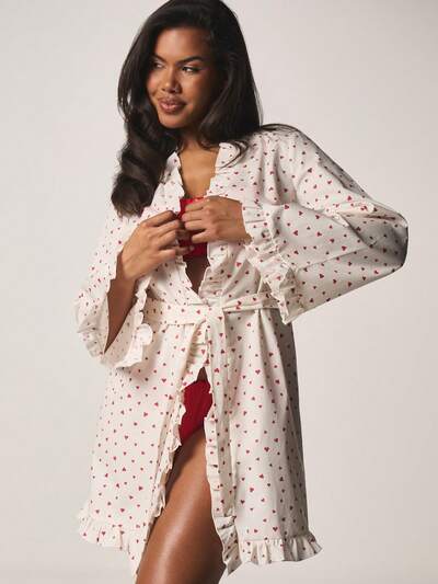 MISSGUIDED Morgenmantel mit Herzmuster, Gürtel und Rüschen-35%