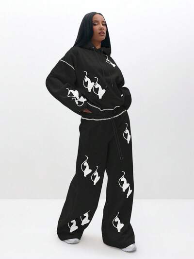BABYPHAT Weite Baggy Sweathose mit Allover-Muster, bequeme Freizeitkleidung für Herbst und Winter-15%