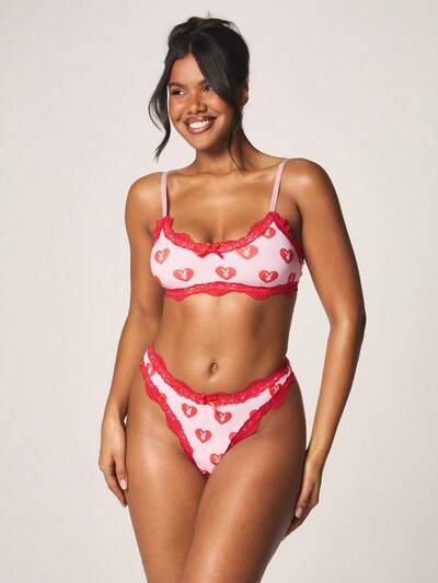 Missguided x Playboy Set aus Bralette und String mit Herzchenmuster und Spitzenbesatz zum Valentinstag-35%