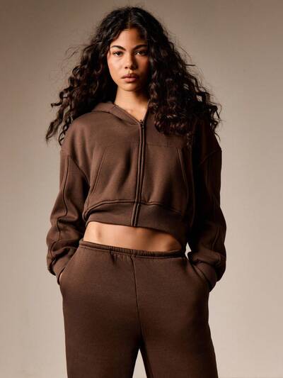 AiiRZ Flauschige kurzgeschnittene Teddy-Kapuzenjacke Wintertrainings-Loungewear Sweatshirt mit Kapuze, Kordelzug, gemütlich, lässig, Sportpullover-40%