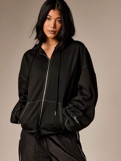 MISSGUIDED Schwarzer Kapuzenpullover mit Nieten und Reißverschluss sowie Kordelzug-25%
