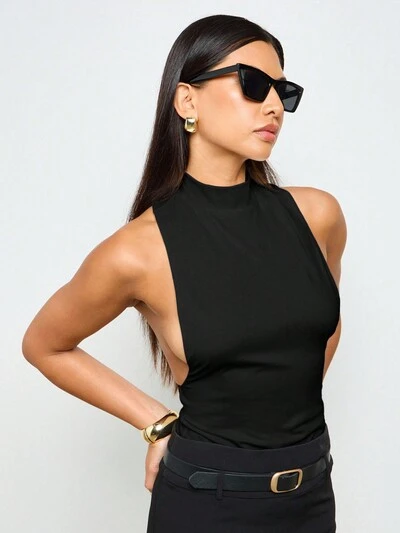 AiiRZ Ärmelloses Mock-Neck Bodycon rückenfrei Racerback Trägershirt Abendparty Club Tragen Modernes schickes Modedesign elegantes Sommer-Herbst-Party-Oberteil12,01 $14,14 $