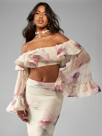 MISSGUIDED Chiffon-Bluse mit Aquarelldruck und langen Glockenärmeln für Damen-50%