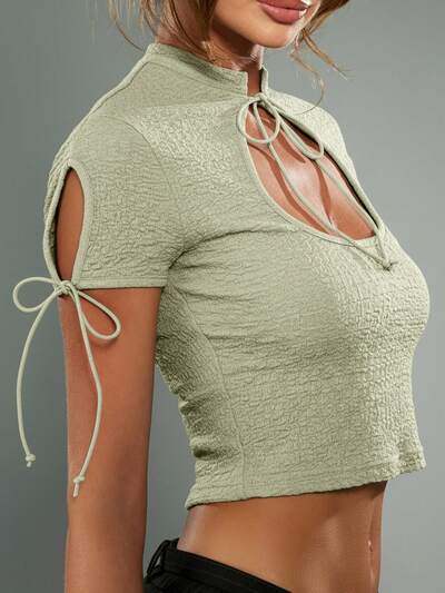 MISSGUIDED Strukturiertes Crop-Top mit Kragen und Bindedetails-40%