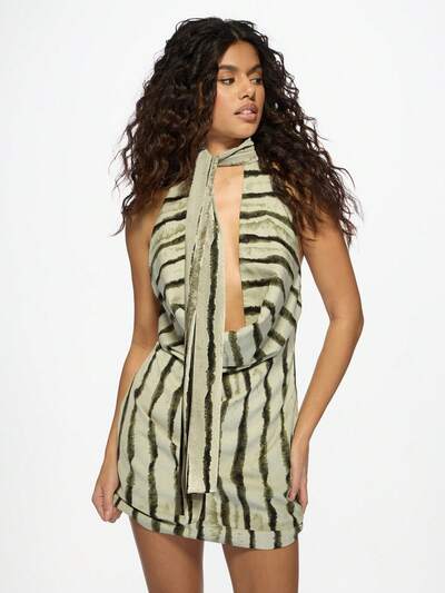 MISSGUIDED Neckholder-Minikleid mit Batikmuster, geraffter Vorderseite und figurbetonter Passform – Weihnachten-50%