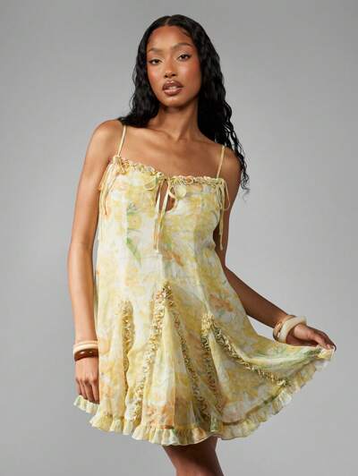 MISSGUIDED Minikleid mit Spaghettiträgern und Rüschen und Bindeband vorne-55%