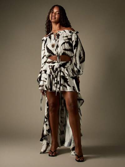 MISSGUIDED Satin-Rüschen-Set mit Zebramuster und High-Low-Rock