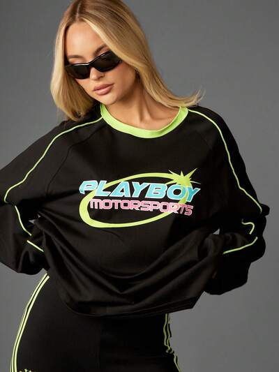 Missguided x Playboy Bedrucktes Langarmshirt mit Rundhalsausschnitt-40%