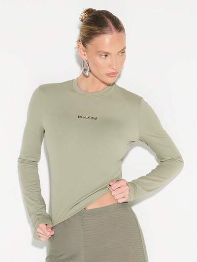 KIZN Langarm Rundhals-Oberteil mit Logo-Muster und anliegender Silhouette für Damen als lässige Layering-Basis-35%