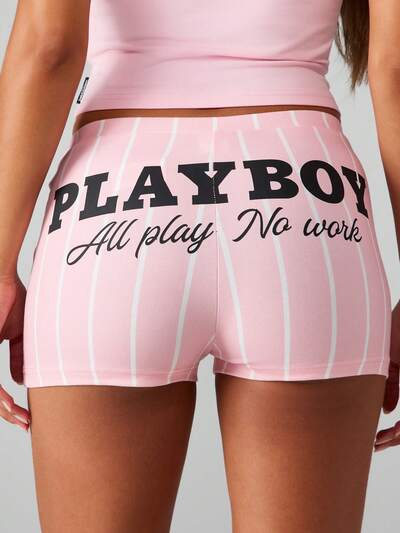 Missguided x Playboy Gestreifte Hotpants mit hoher Taille und Logo-Print-55%