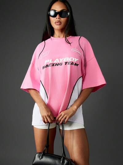 Missguided x Playboy Oversize-T-Shirt im Farbblockdesign mit Racing-Grafikdruck-40%