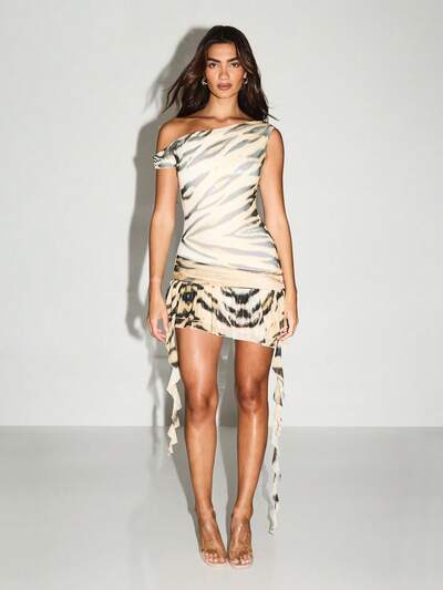 KIZN Tiger Muster Eine Schulter Mini Abendkleid Asymmetrisch Rüschen Party Festliches Kleid Frühling Sommer Resort20,43 $22,70 $