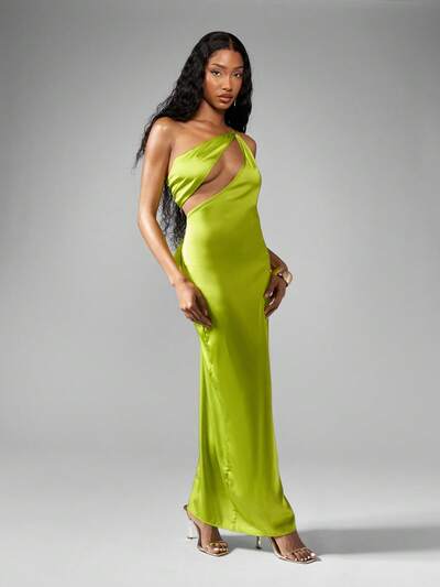 MISSGUIDED Luxuriöses, schulterfreies Midaxi-Kleid aus Satin mit Cut-Outs – Weihnachten-55%