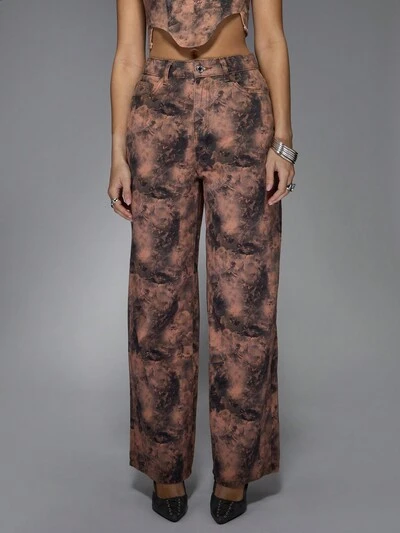 MISSGUIDED Jeans mit weitem Bein und Renaissance-Print und Schnürung hinten-55%
