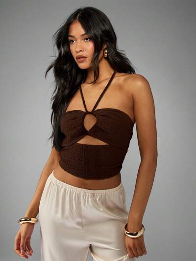 MISSGUIDED Strukturiertes, gerüschtes Neckholder-Crop-Bustier mit Bindedetail