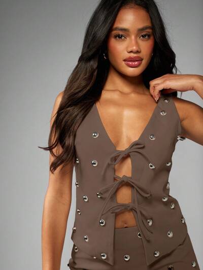 MISSGUIDED Weste mit Nieten und Bindeband vorne und seitlichen Ausschnitten