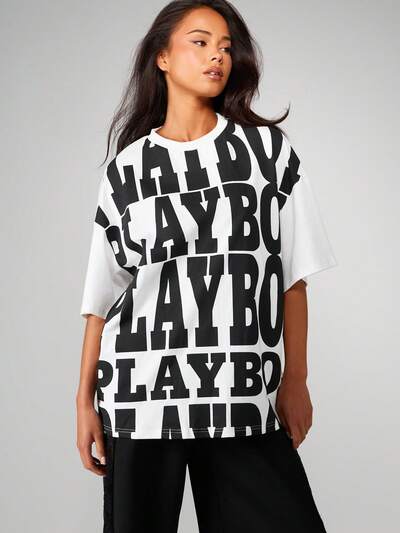 Missguided x Playboy Bequemes Oversize-T-Shirt mit Grafikdruck-45%