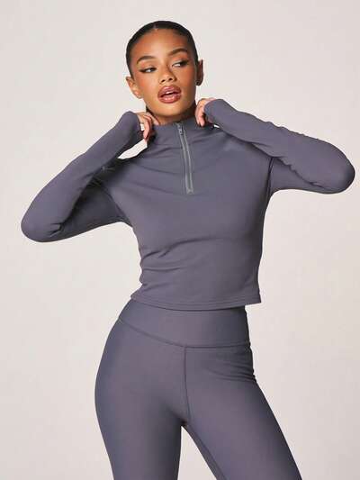 MISSGUIDED Langarmshirt mit halbem Reißverschluss und RippstrickNEU