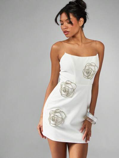 MISSGUIDED Trägerloses, figurbetontes Minikleid mit Kristallrosen-Details
