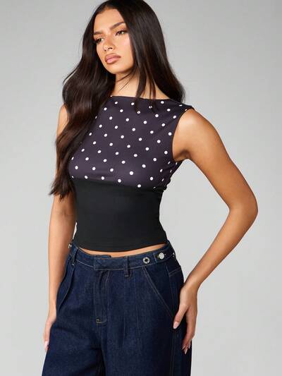MISSGUIDED Ärmelloses Crop-Top mit Polka Dots und V-Ausschnitt am Rücken